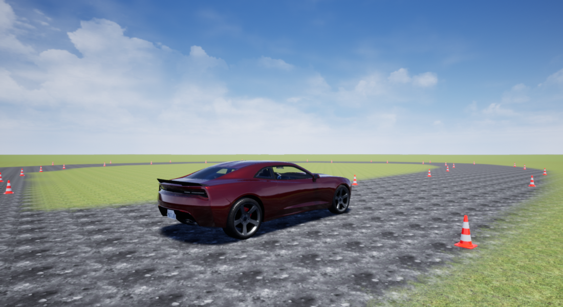 The first step is to create a 3D simulation environment consisting of a vehicle, track, and cones. The Vehicle Dynamics Blockset Toolbox comes installed with prebuilt 3D scenes to simulate and visualize the vehicles modeled in Simulink. These 3D scenes are visualized using the Unreal Engine from Epic Games.