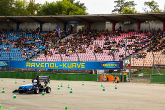 Up to 5 cars will drive simultaneously on track, electric and combustion cars drive together. The starting order was determined in yesterdays Autocross event, the slowest cars of this qualifying will start first.