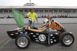 On the 75 m long track Kiel University could win the event for itself and proved that they build the fastest racing car of all starting teams. Kiel completed its turn with a time of 4.11 seconds. The teams University of Stuttgart and University of Braunschweig just slightly missed the best time by 1/10 second.