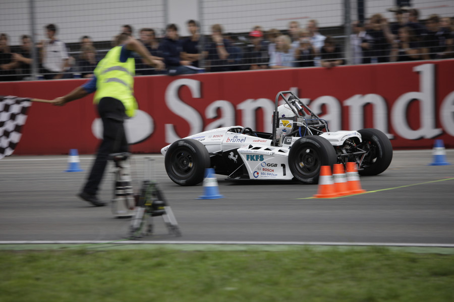 58 of 77 teams put their cars’ acceleration to the test. Fastest car to make the 75 meter distance was the University of Stuttgart, with its best time of 3.992 seconds. The University of Hatfield finished second. Third place goes to the Rochester Institute of Technology.