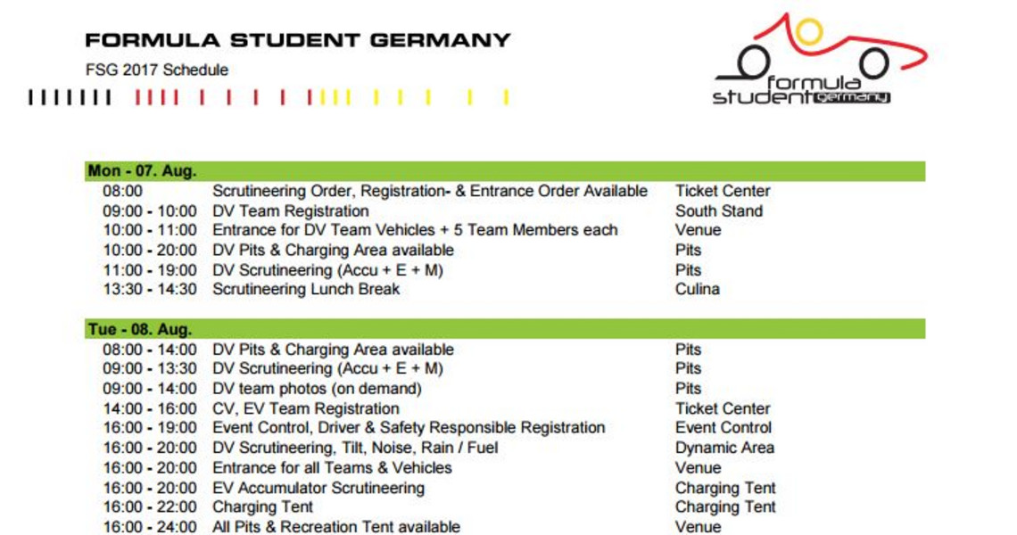 In order to integrate the new driverless class some time slots had to be adapted. So among others the team registration and scrutineering for the driverless class will already start on Monday, the award ceremony part I will take place on Saturday.