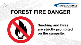 The forest fire warning level for the Hockenheimring campsite has been raised to level 4 out of 5 for the coming days. As a result, all fires are strictly prohibited!