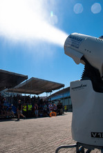 Two snowguns in front of the pits and the stand will help you keep cool on this hot day.