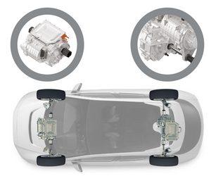 The e-drive on the rear axle has a torque vectoring function that is implemented by an electromechanically actuated wet clutch, one per rear wheel – this solution requires no differential. Engineers chose this design to achieve the optimum combination of cost, weight, efficiency, and driving dynamics: the wheel-specific clutches make it possible to direct the available torque directly to one of the rear wheels, which optimizes driving stability and safety during dynamic cornering.