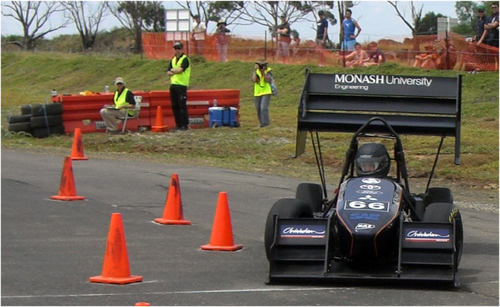 Other Design Finalists were RMIT, Auckland and the Design winners Edith Cowan University from Perth. The RMIT and Auckland cars were reasonably similar in concept, both small composite chassis powered by 450cc single cylinder Yamaha engines, though RMIT were on 10” wheels and Auckland on 13”.