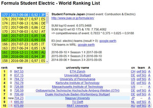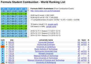 Both Formula Student World Ranking Lists have been updated after the last competition of this season in Australia. You will find them on https://mazur-events.de/fs-world/.
