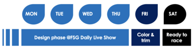 Tune in every night on 9:30pm to the FSG Live Show to get to know what's the upcoming part. Start your sprint design phase and submit your All Star Car part until 8:00pm the following day. Then during the FSG Live Show vote for your favorite part via Slido.